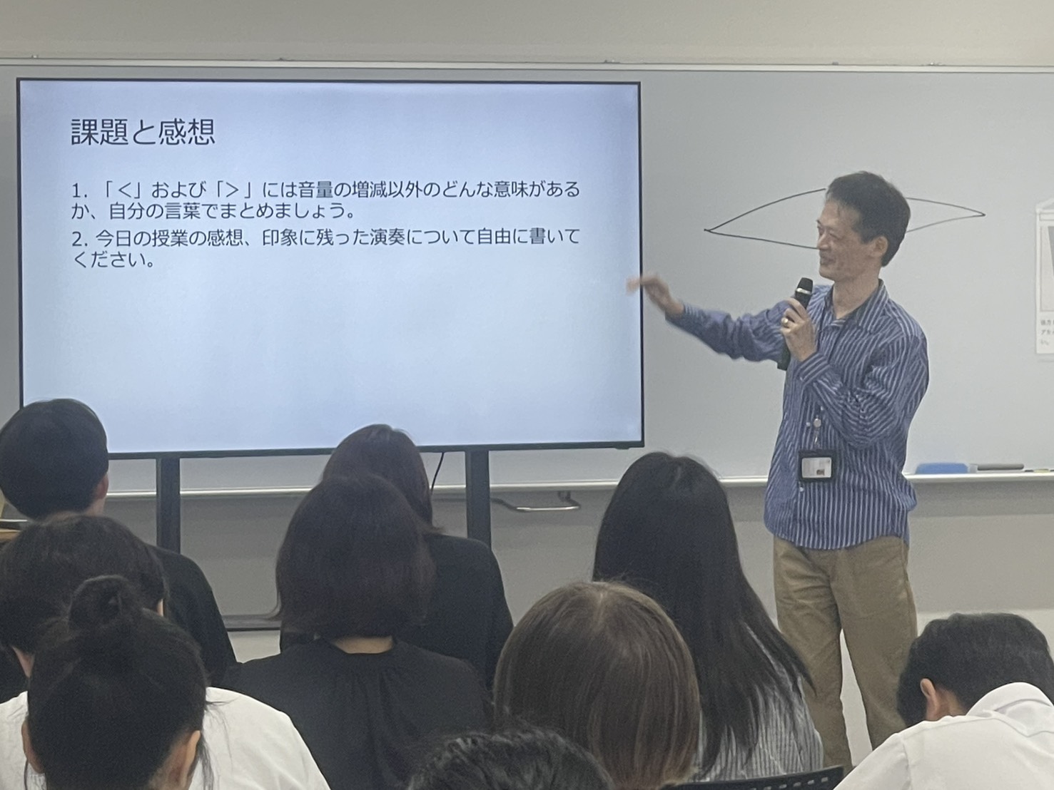 対面オープンキャンパスでは,昨年度も実施した「演奏科学研究体験」に加えて,「西洋音楽史の模擬授業」と「学生による専攻紹介」を行いました。