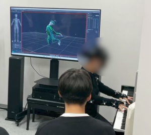 ▲演奏科学研究体験:1. モーションキャプチャ体験,2. 眼球運動の計測,3. 歌唱時の呼吸の計測